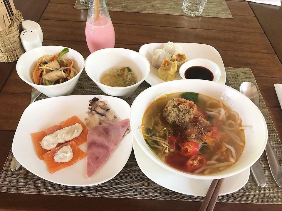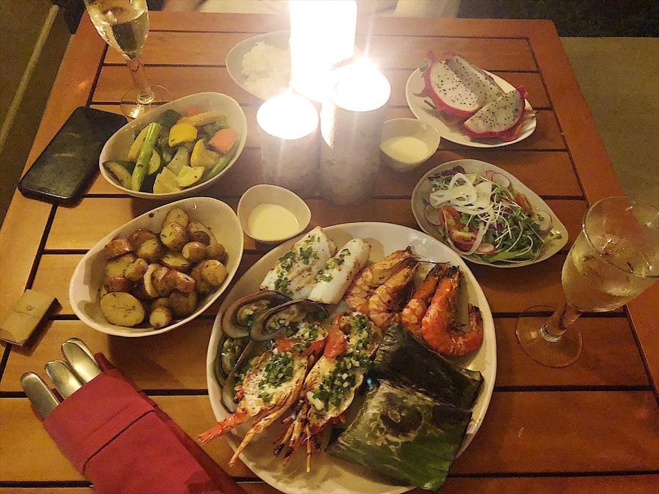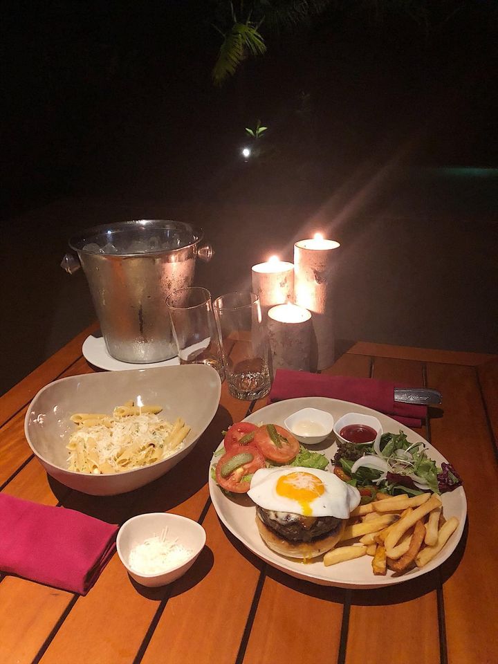 Đây là kiểu du lịch nghỉ dưỡng tuyệt vời lý tưởng cho những bạn muốn trốn khỏi thành phố náo nhiệt để trở về nơi yên tĩnh bình yên thư giãn đầu óc sau thời gian dài làm việc mệt mỏi. Vì là đi nghỉ dưỡng nên bọn mình rất LƯỜI. Lười đến nỗi chỉ mún ăn, ngủ, bơi cả ngày. Nên cho dù Resort có xe chuyên chở mng vào chợ đêm mỗi tối (Có tính phí và phải book trước) nhưng bọn mình không thích đi. Và order món ăn vào tận phòng vừa ăn vừa bơi và nghe nhạc. Món ăn rất ngon và hợp khẩu vị với mình nhưng giá thì cũng tạm ổn không rẻ như ra ngoài ăn đâu (Vì là resort và có người bê đồ ăn vào tận giường nên giá như vậy cũng khá ok).