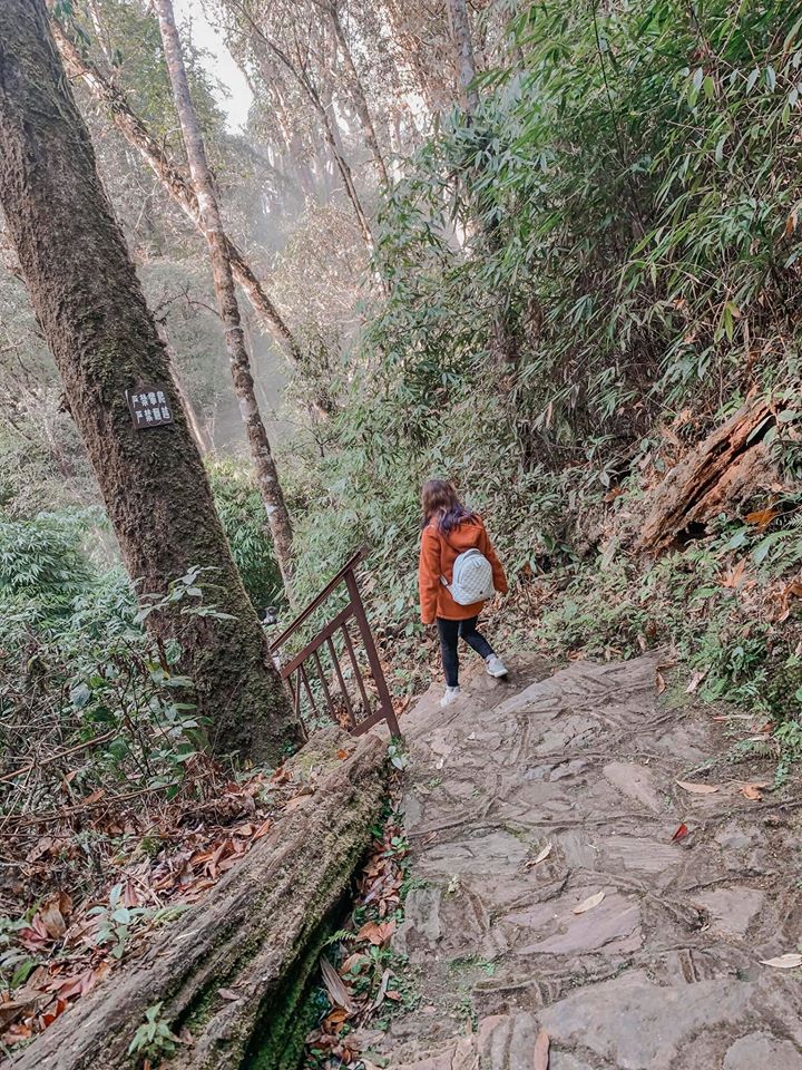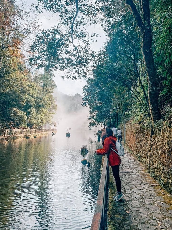 Từ cổng khu bảo tồn các bạn sẽ đi xe điện 10km nữa. Đến chân núi thì sẽ trekking lên. Nơi đây là khu rừng lớn, hoang sơ. Cầu treo trên cao là 1 điểm khá thú vị ở đây. Mình sợ độ cao nhưng vẫn đú. Ngoài ra còn có mộ vua người Miêu, bộ xương khủng long hoá thạch,…Bậc đi trong rừng đa phần là đá, khá trơn. Khung cảnh siêu đẹp thích hợp chụp những bức ảnh kiểu rừng rú, thám hiểm