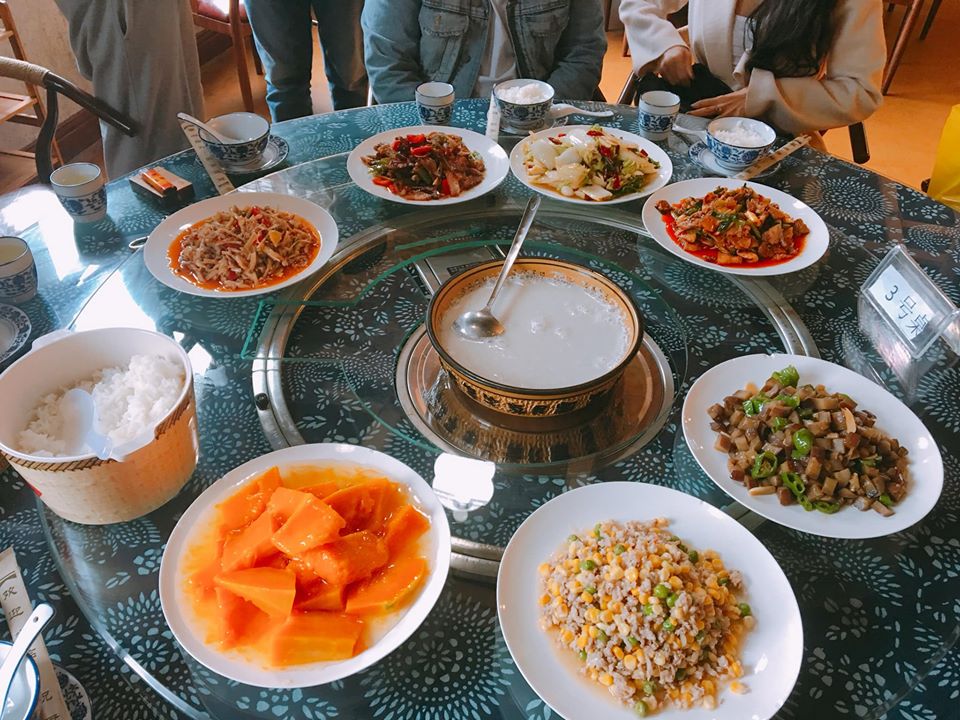 Đồ ăn ở Trung Quốc khá cay, món nào cũng nhiều ớt, dầu và hơi mặn so với mình. Giá ăn uống ngoài trong chương trình tour ra thì cban ăn vặt cũng khá hay ho: nội tạng vịt nướng, xúc xích nướng đá, trà sữa, bánh kẹo,…cùng các món đặc trưng của Trung Quốc mà mình không biết tên. Trung bình dưới 5 tệ/món thôi ý.