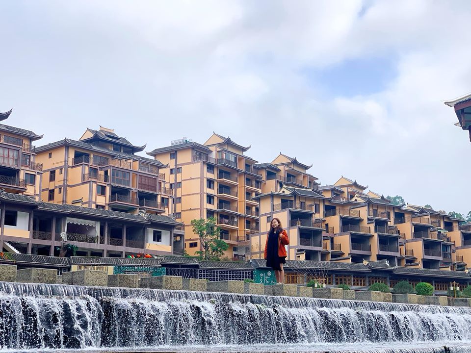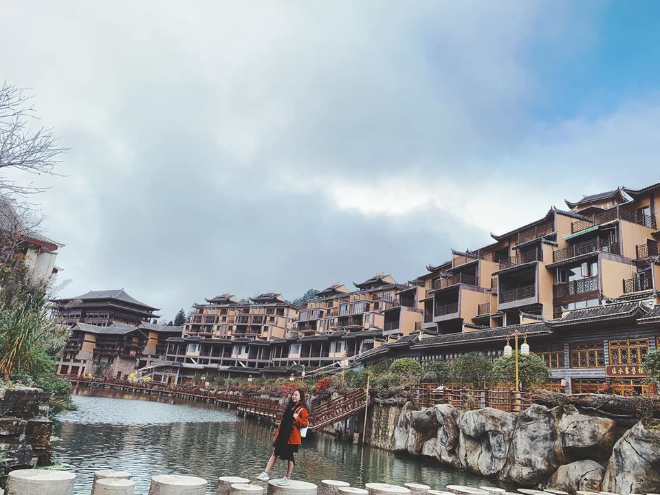 Đây là khu nhà nước xây để khuyến khích người dân trên núi xuống phát triển kinh tế nhưng họ không quen nên ở đây hầu như rất ít người sinh sống. Đây cũng là nơi thiên đường sống ảo, có thác nước, bậc đá hao hao giống Phượng Hoàng Cổ Trấn nên được mệnh danh là tiểu Phượng Hoàng Cổ Trấn. Kiến trúc cung đình phong kiến Trung Quốc thời xưa. Mình hơi tiếc vì đi vội không chuẩn bị kịp concept ảnh cho phù hợp.