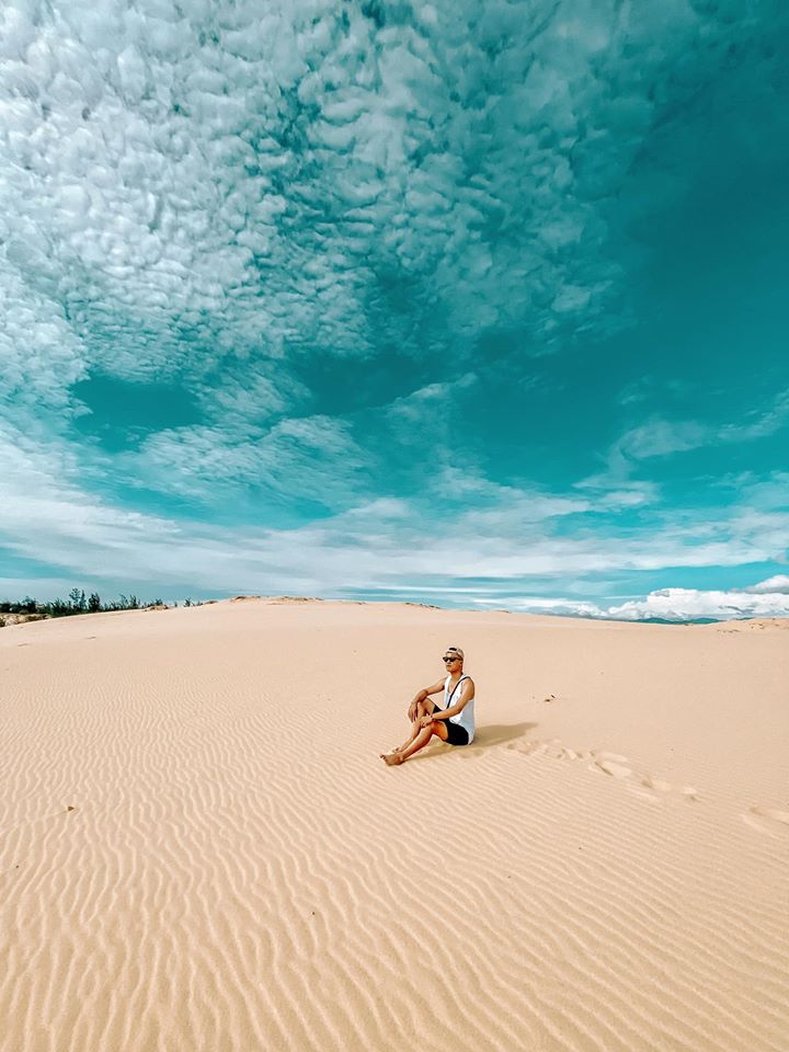 Cồn cát Quang Phú cách TP Đồng Hới 8Km. Cứ đi dọc cung đường ven biển tuyệt đẹp là tới nơi. Tới nới thì mồm chứ O mắt chữ A vì nó quá là đẹp đi, cát trắng, nắng sáng sớm không gắt lắm, trời xanh tuyệt đẹp.