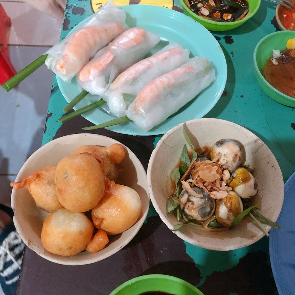 Kết thúc tour khoảng 18h về đến khách sạn, bọn mình nghỉ ngơi và đi ăn cùng bạn: cực kì ấn tượng với món bánh canh, đường Trần Phú (cực kì nên đi cả dãy dài toàn đồ hải sản, nướng, hoa quả xô, cơm cháy kho quẹt) giá cả sinh viên, chất lượng ổn.