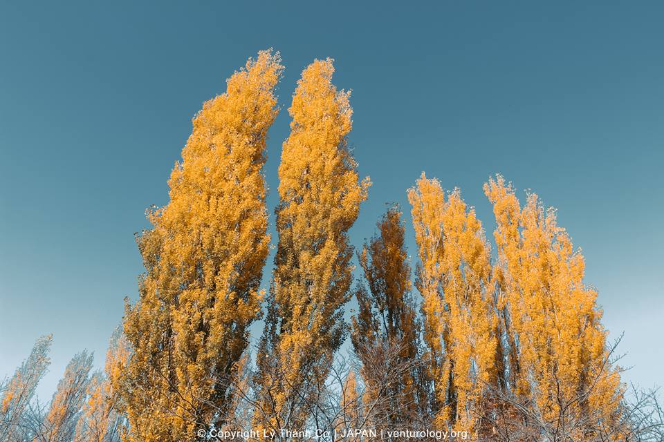 Đừng nghĩ rằng những mùa khác núi Phú Sĩ có thể đẹp hơn. Dạo qua hồ Kawaguchiko nhìn núi đang nằm lấp ló sau những rặng cây rẻ quạt đang chuyển vàng. Cảnh sắc này chỉ có thể bước ra từ những bức tranh vẽ.