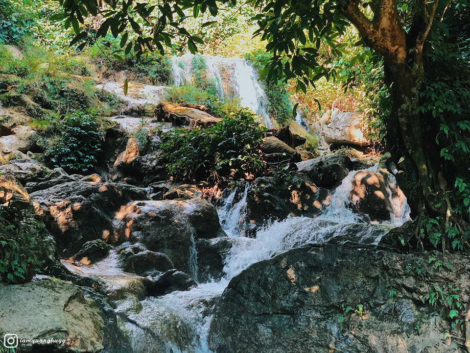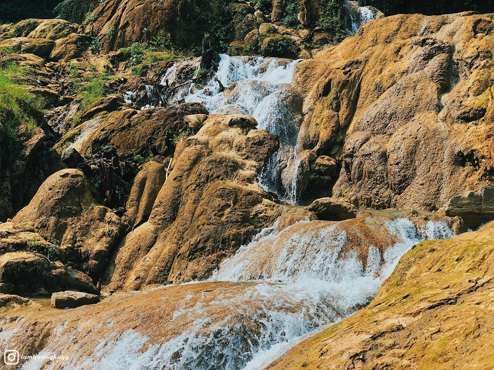 +Thác Khuổi Nhi: dòng thác cao vút, bọt tung trắng xóa đổ dồn xuống một bể nước tự nhiên trong xanh kỳ ảo đẹp mê hồn.