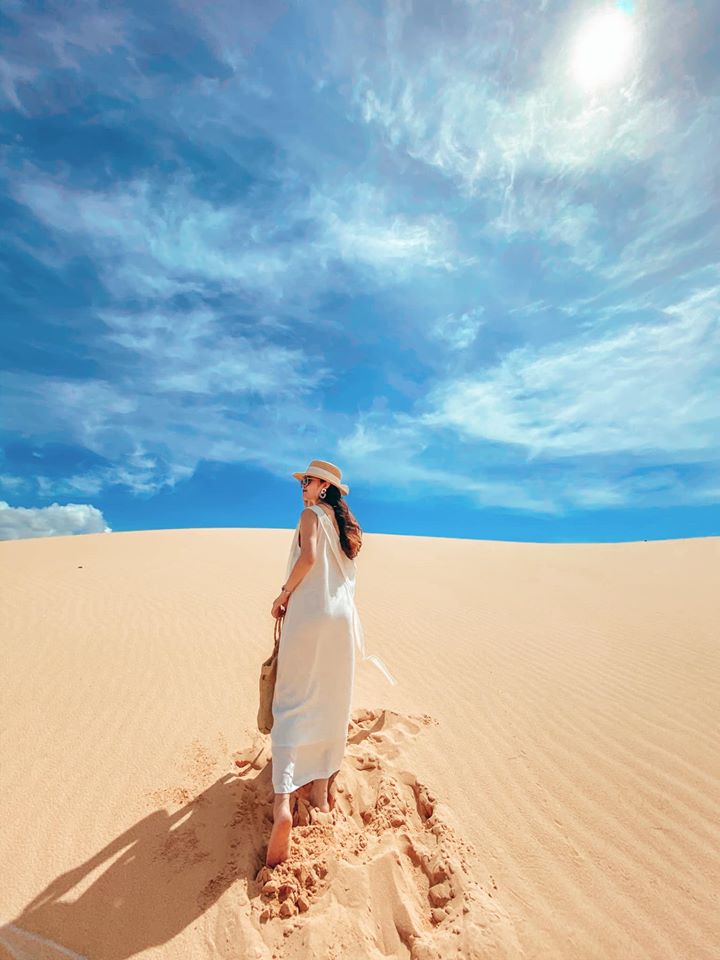 Bãi Cát Mũi Dinh có những góc chụp lạ lắm ạ. Mọi ng nên đi 1 vòng rồi chọn chỗ chụp ưng ý nhất. Chúng mình đã có những bức ảnh để đời ở đây. Đẹp hơn đồi cát Nam Cương nhiều. Lần này là nhóm thầu cả bãi cát thật. Không có 1 ai ở đây chơi với chúng mình. Lúc vào không có thu vé nhưng khi ra vẫn biếu chú bảo vệ một chút vì chú nhiệt tình lắm.