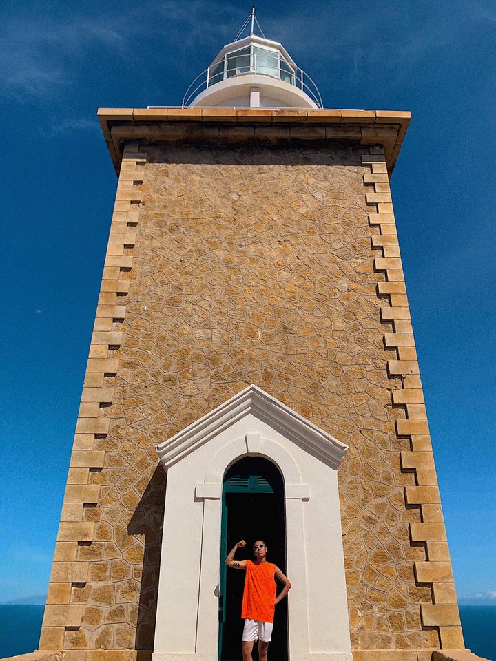 Chụp hình và nghỉ ngơi xong tụi mình tiếp tục di chuyển khoảng 2,3km tới Quán 2 Tin để thuê xe cẩu chở xuống Mũi Dinh (giá 200k/2ng bao gồm cả lên và xuống). Dưới Mũi Dinh có nhiều quán Hải sản, giá cũng rất ổn, mình ăn trưa ở đó rồi thuê người dân chở xe máy lên Hải Đăng Mũi Dinh chụp hình (50k/ng), từ hải đăng sẽ ngắm được cảnh biển ở dưới siêu đẹp luôn. Đợi bớt nắng thì tụi mình chụp hình ở bãi đá dưới Mũi Dinh rồi tắm biển lúc hoàng hôn. Bãi biển ở đây sạch và cũng đẹp lắm nè.