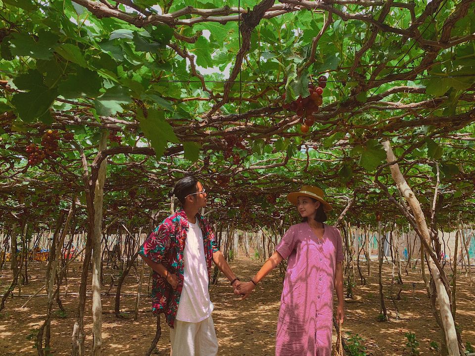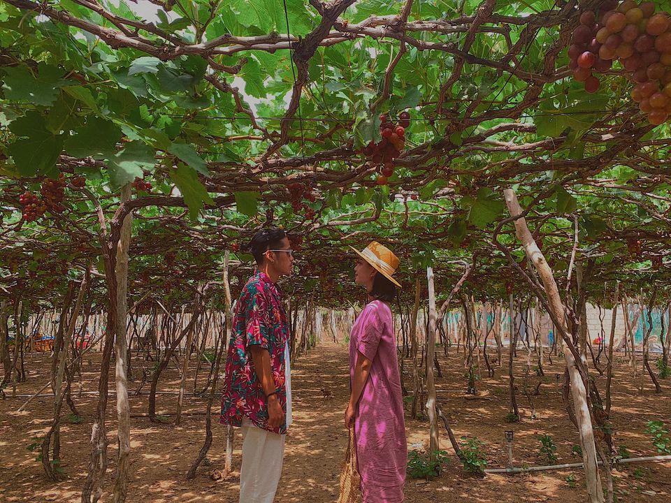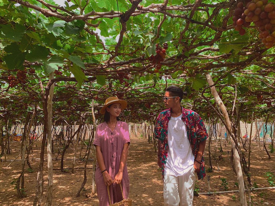 Ăn trưa rồi nghỉ ngơi chút, tụi mình di chuyển tới Vườn Nho Thái An (cách homestay khoảng 7km), ở đây được tham quan vườn nho miễn phí và còn được họ mời thử nho, các loại mứt và siro nho, sau khi chụp hình thì mình có mua luôn nho tươi và mấy loại mứt để làm quà, giá cũng rất ok ạ.