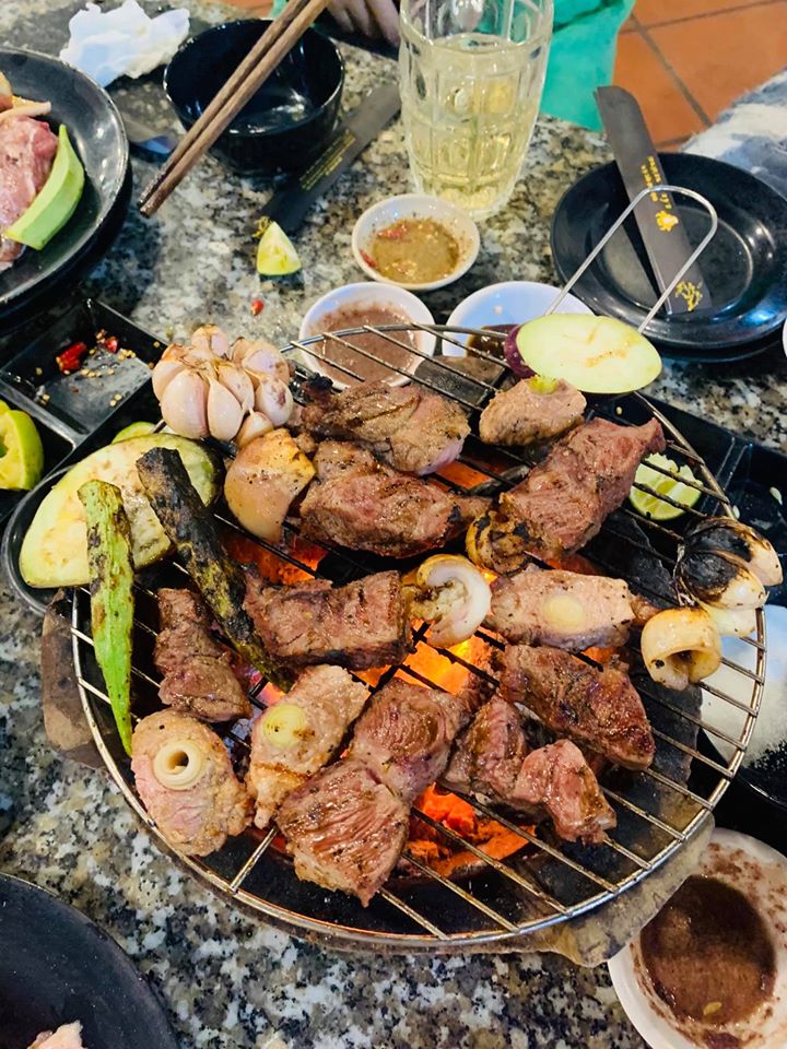 – 7h: Đi ăn tối, vì trưa vừa ăn hải sản cả tôm hùm các kiểu nên hơi chán rồi chuyển qua quân Bò Tơ Tây Ninh ở 100 Trần Hưng Đạo (thấy khá nhiều người review khen ngon) nên tụi mình có ghé quá thử. Điểm công bò khá ngon nướng than hoa thơm phức, điểm trừ thì quán quá đông, ngồi đông đúc, nóng nực. Vote 8đ heng.