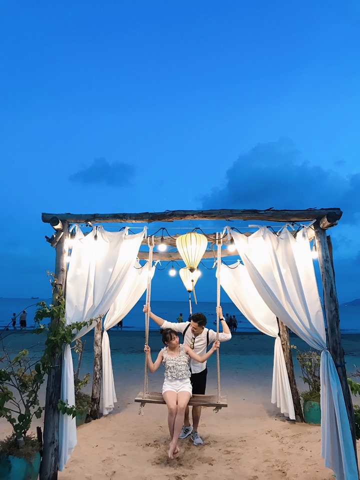 Chụp choẹt xong bọn mình đi ăn tối luôn. Bọn mình chọn quán Ốc Thuý Kiều để ăn vì được bạn bè review là ngon bổ rẻ mà đúng là như vậy thật, trời ơi gọi một loạt hơn chục món hải sản mà ăn xong thòm thèm lại gọi tiếp mà lúc thanh toán hết tổng cộng có 300k bọ, vì hầu hết các món ở đây đều đồng giá 20-30k/đĩa mà. Tối bọn mình lượn lờ quảng trường, ngồi bờ biển tâm sự chém gió rồi về ngủ để hôm sau đi Kỳ Co – Eo Gió.