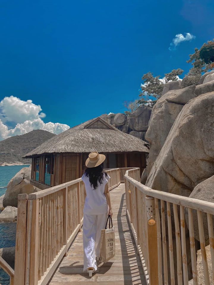 Cảm giác đâu tiên khi đặt chân tới Six Senses Ninh Vân Bay bình yên đến lạ như được hoà mình vào thiên nhiên các bạn ạ. Non nước hữu tình, biển nước trong xanh (mình chưa từng đi biển ở đâu sạch đẹp trong như thế này)… Đúng kiểu thiên đường hạ giới là có thật…