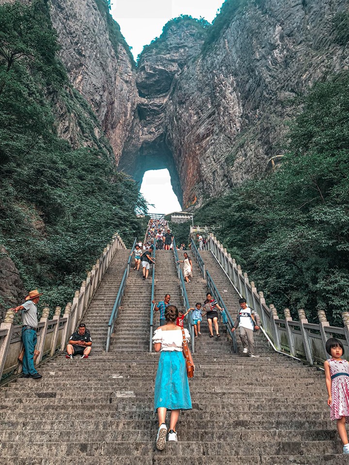 Ngày 4: Vẫn là ăn buffet sáng tại khách sạn và trả phòng. Đoàn sẽ di chuyển đến tham quan Phù Dung Cổ Trấn có tận 2000 năm. Đây cũng là một nơi mỗi bước chân là một gốc để sống ảo. Phù Dung hiện lên như một bức tranh tuyệt đỉnh khi những ngôi nhà trên núi theo phong cách cổ và kết hợp với những thác nước chảy từ trên cao. Sau đó đoàn sẽ ăn cơm và địa điểm đến tiếp theo là Thiên Môn Sơn, để lên được cáp treo mọi nguời phải xếp hàng hẳn 2 tiếng hơn( khi đến nơi nhìn thấy mọi người nối đuôi nhau xếp hàng thì mình đã có ý định bỏ cuộc nhưng lại suy nghĩ nó có gì thì mọi người mới đua nhau đi như vậy, thế là mình đứng hẳn 2 tiếng). Sau khi lên đến được thì đúng là không thể nào hối hận được vì sự hùng vĩ của núi non. Lên đó mọi người sẽ được ngắm nhìn 99 khúc cua và Cổng trời. Khi đi xuống đoàn sẽ không đi cáp treo mà là đi xe để trải nghiệm 99 khúc cua (cảm giác thât là yomost). Đoàn ăn cơm tối và đến nhận khách sạn tại Trương Gia Giới gần địa điểm núi Avarta.
