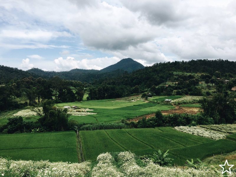 Cánh đồng hoa cúc ở làng Om Long, huyện Samoeng, tỉnh Chiang Mai sẽ nở vào mỗi độ cuối tháng 10 và tháng 11. Bạn sẽ chỉ có khoảng 1 tháng để ngắm những cánh đồng hoa bạt ngàn này thôi đấy!