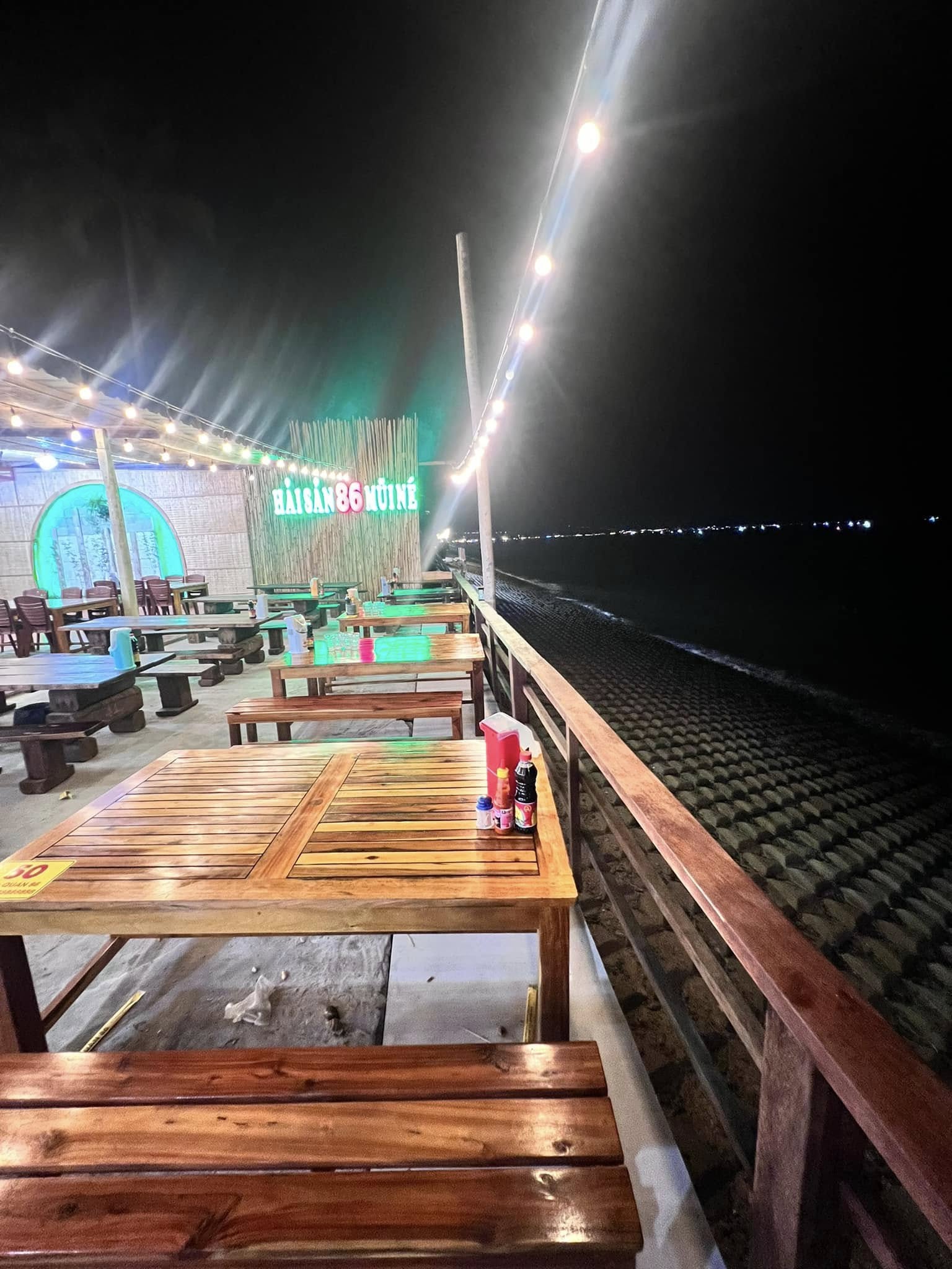 Ngồi nghe sóng vỗ, chọn hải sản tại hồ – trải nghiệm không thể bỏ lỡ. Nhắc đến hải sản Mũi Né, Bờ Kè 86 gần như là cái tên “quốc dân”. Quán nằm sát biển, bàn ghế đơn giản nhưng bù lại là không gian mở, gió biển mát rượi và view biển rất thật – không cần cầu kỳ nhưng đúng chất nghỉ dưỡng biển.