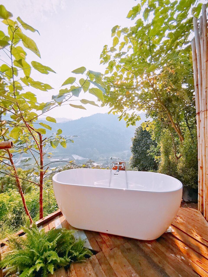 Chỗ ở có 9 biệt thự với tất cả các phòng tắm riêng. Và chỉ có 1 bồn tắm ngoài trời. Giá phòng tham khảo bao gồm bữa sáng: Phòng không có bồn tắm 2.850 baht (2.1tr)/ phòng có bồn tắm 3.500 baht (2,7tr).