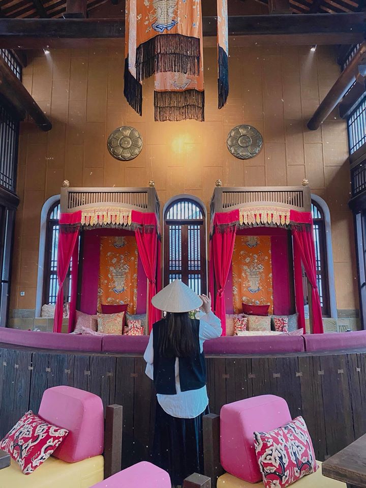 Thiền Quán Lounge: 1 điểm không thể không kể tới ở đây – bạn sẽ được phục vụ trà chiều siêu xinh, nơi bạn sẽ chụp được rất nhiều bức ảnh xinh đẹp đó! Điểm nhấn siêu ăn tiền là hai chiếc giường Hoàng Hậu và Vua cực đẹp! Mấy đứa chúng mình say đắm sống ảo ở đây lắm này.